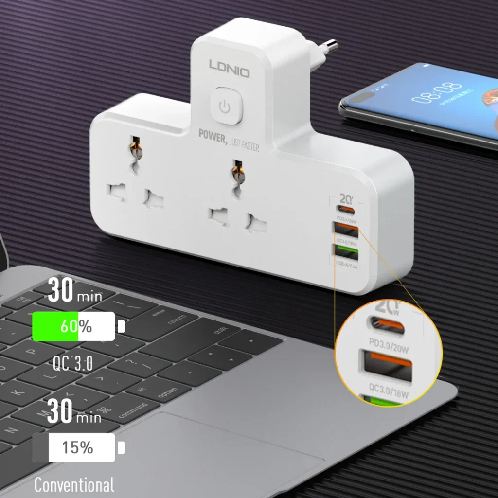 Smart Power Hub With Touch Control Night Lamp