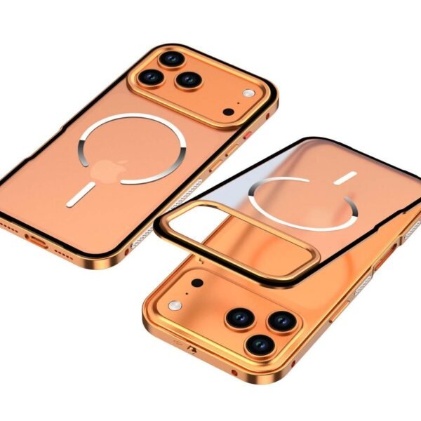 Case for iPhone 17 Pro/Pro Max, Chrome Steel Protective Cover with Wireless Charging Ring, Slim Design (Orange, iPhone 17 Pro Max)
