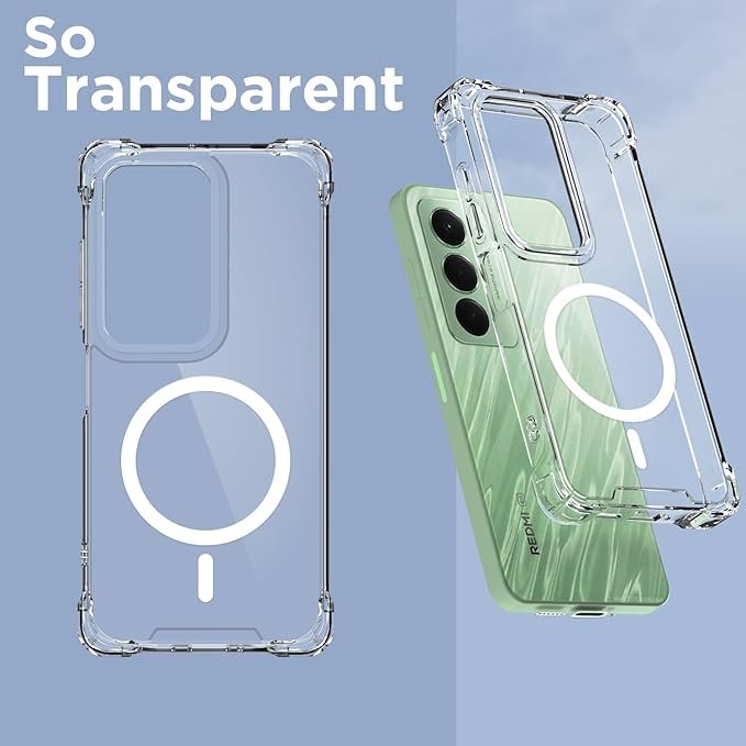 Pikkme Back Cover for Redmi 15 5G Mag-Safe Shockproof PC + TPU Protective Case Magnetic Support Bumper Case (Transparent Mag-Safe)