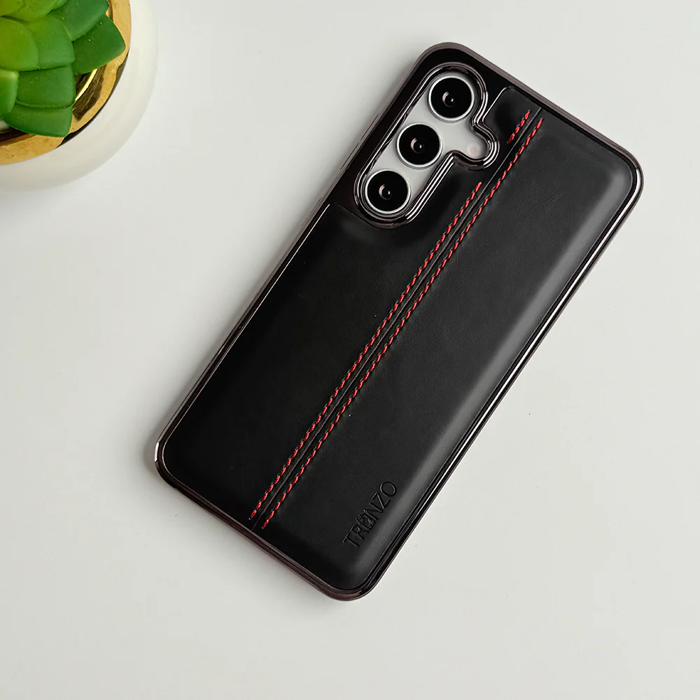 Samsung Galaxy S Series Middle Stitch PU Leather Side Chrome Case Cover