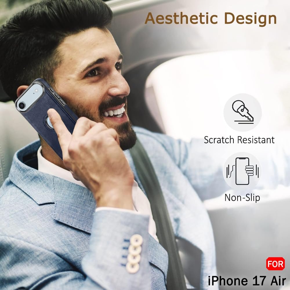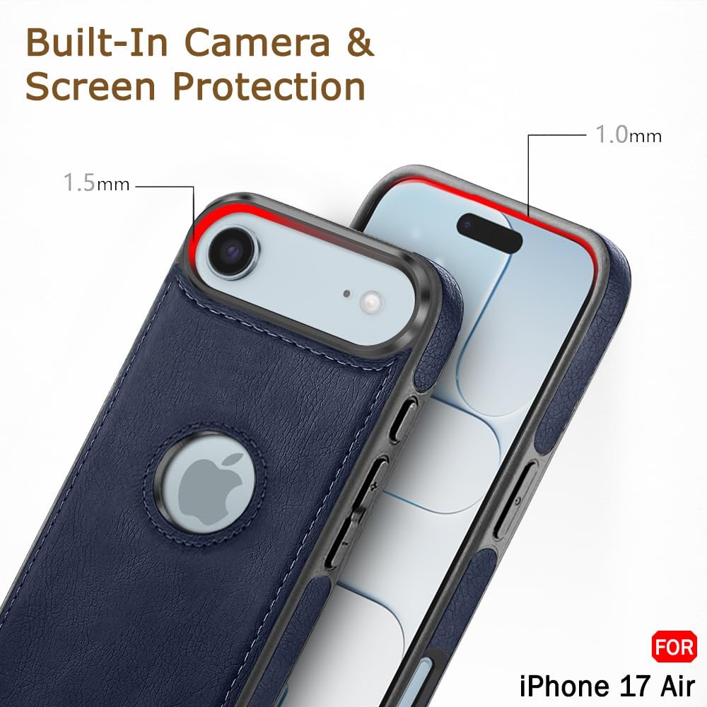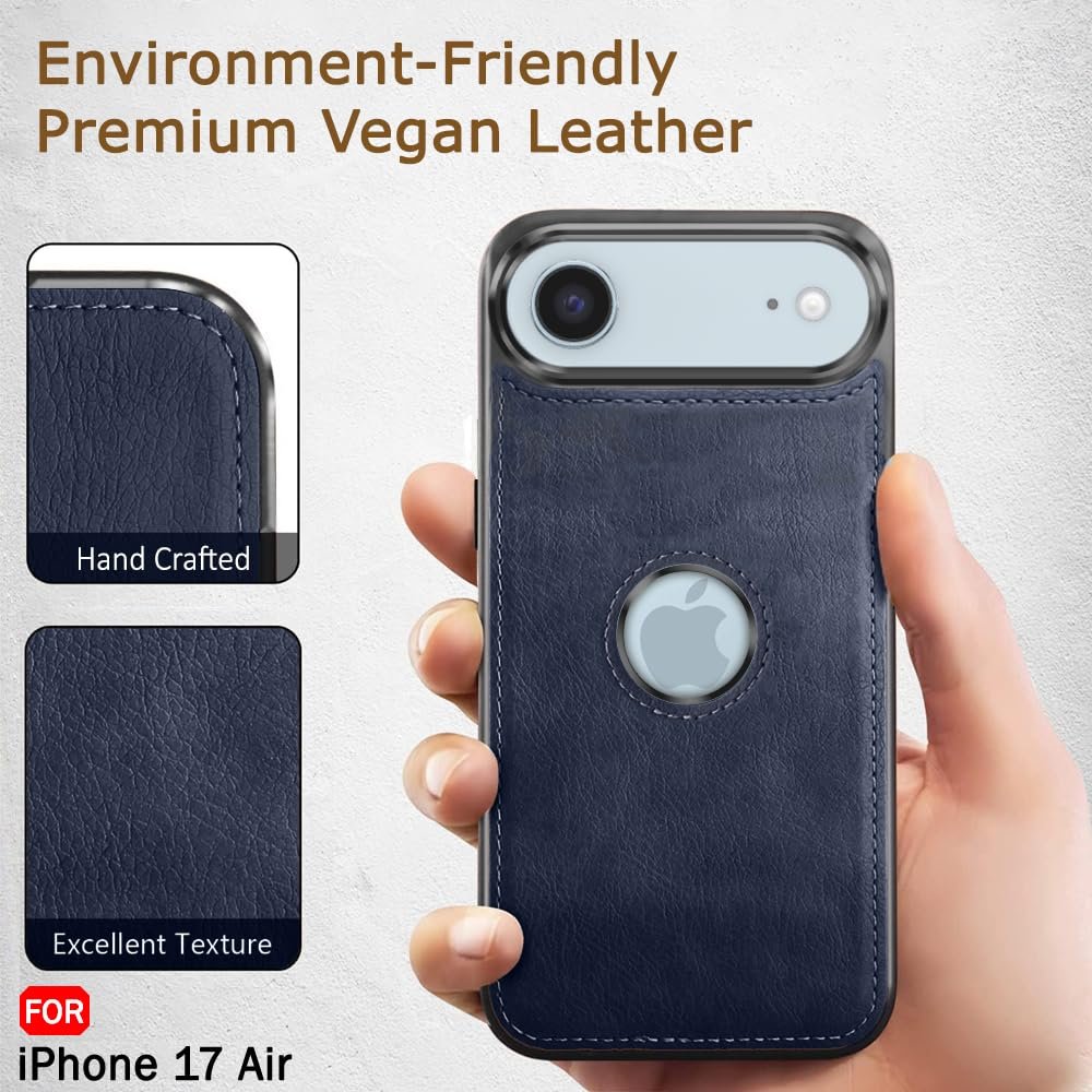 TheGiftKart Genuine Leather Finish Back Cover Case for iPhone 17 Air | Shockproof Design | Raised Edges for Camera & Screen Protection | Stunning Minimalist Design Back Cover Case (Blue, Chrome)
