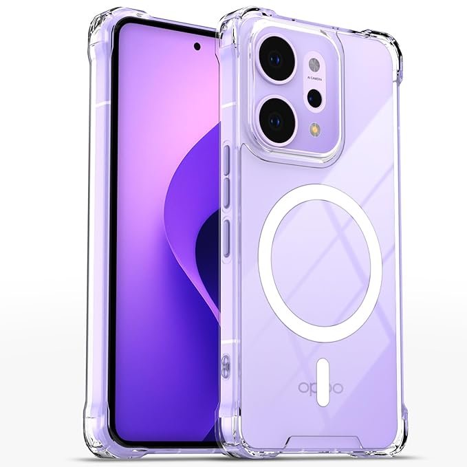 Pikkme Back Cover for Oppo Reno 14 Pro 5G Mag-Safe Shockproof PC + TPU Protective Case Magnetic Support Bumper Case (Transparent Mag-Safe)
