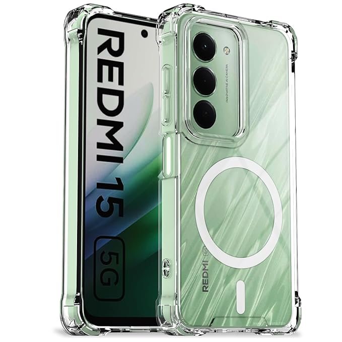 Pikkme Back Cover for Redmi 15 5G Mag-Safe Shockproof PC + TPU Protective Case Magnetic Support Bumper Case (Transparent Mag-Safe)