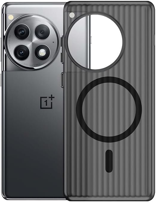 Click to see full view Kapa Matte Magnetic Wave Grip Back Cover for OnePlus 12 | [MagSafe Compatible] Wireless Charging, Slim, Metal Buttons Frosted Back Case (Grey)