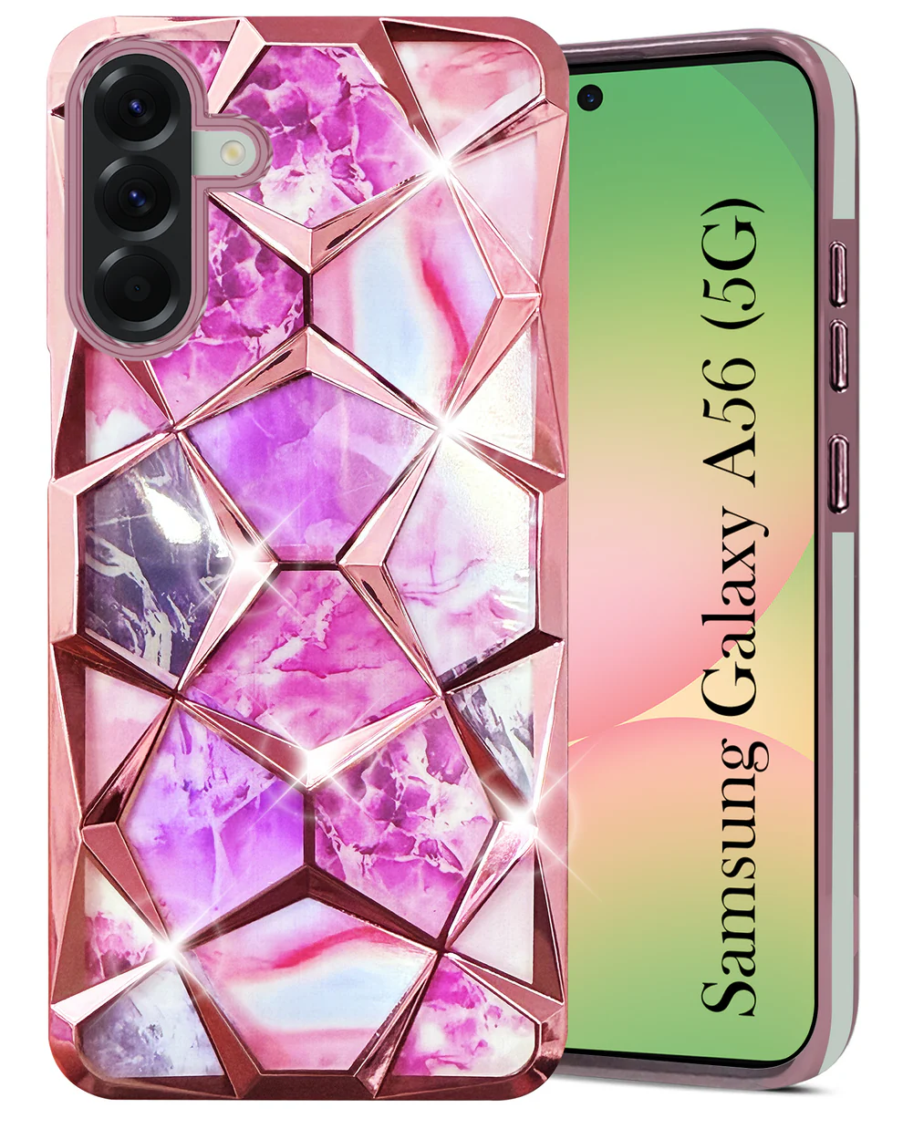 For Samsung Galaxy A56 Back Cover Case (Dual Design Glitter Sparkle and Detachable Diamond Print Case | Soft and Flexible)