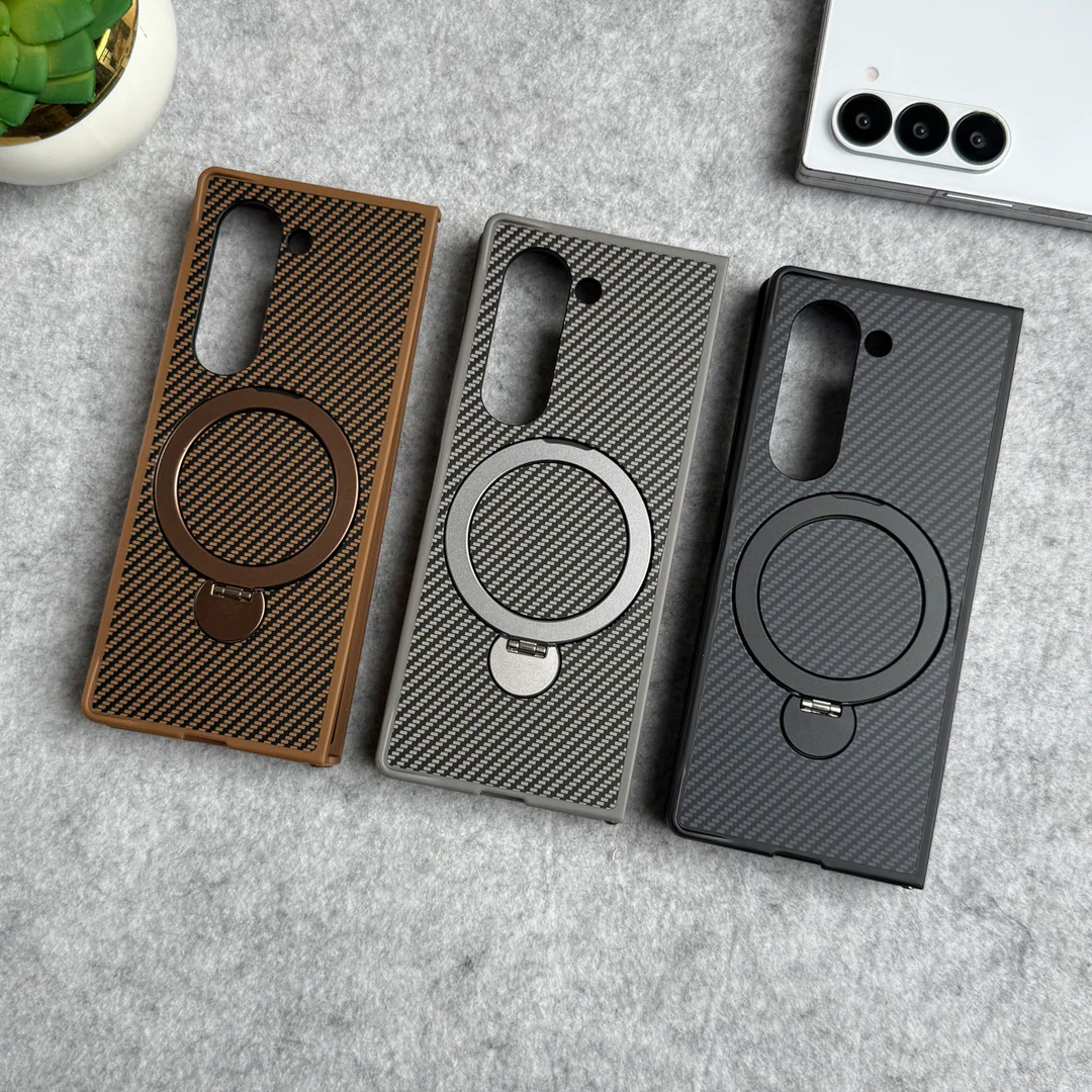 Samsung Galaxy Z Fold 7 Premium carbon Fiber Texture MagSafe Magnetic Stand Case Cover
