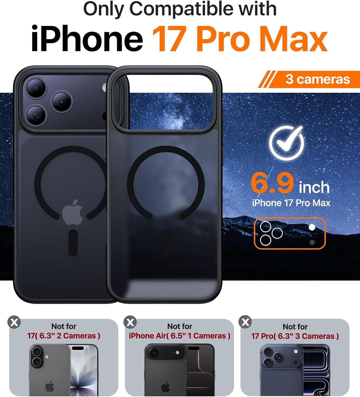 iPhone 17 Pro Max Case | Frosted Translucent Hard Back Cover Compatible with Mag-Safe