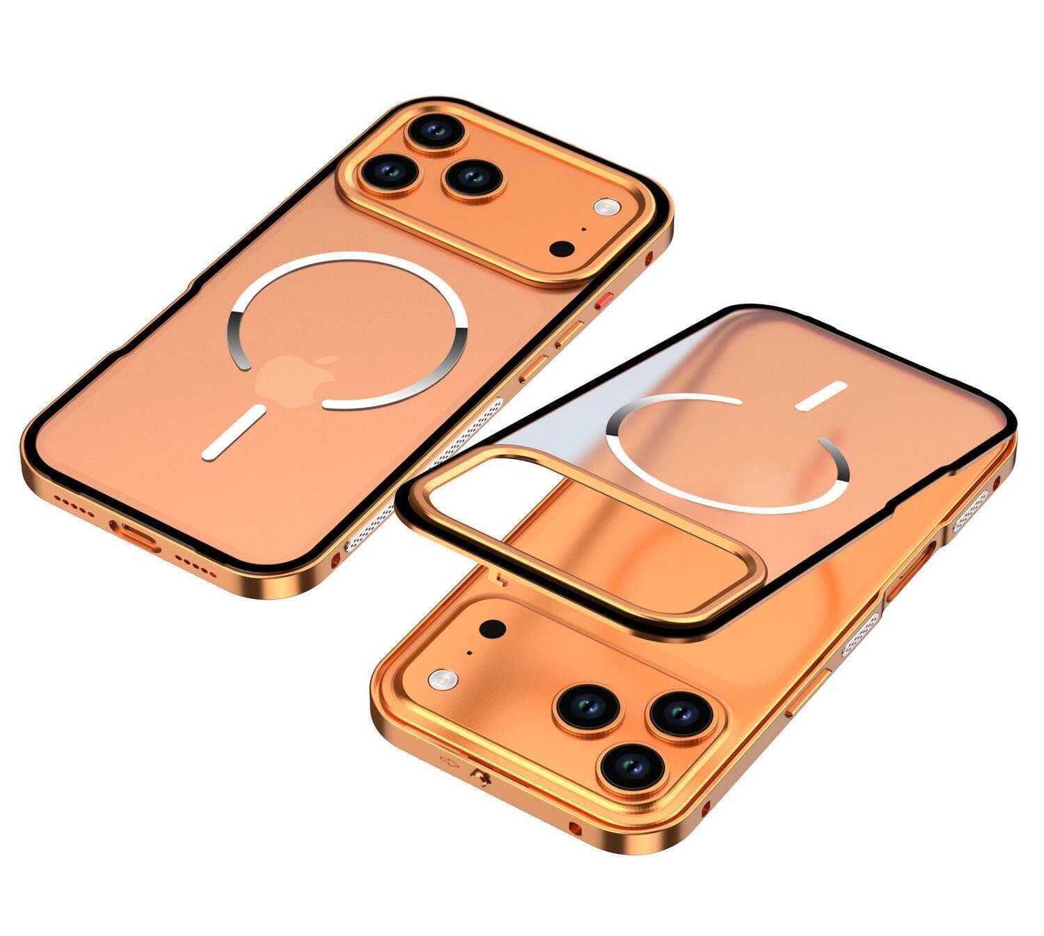 Case for iPhone 17 Pro/Pro Max, Chrome Steel Protective Cover with Wireless Charging Ring, Slim Design (Orange, iPhone 17 Pro Max)
