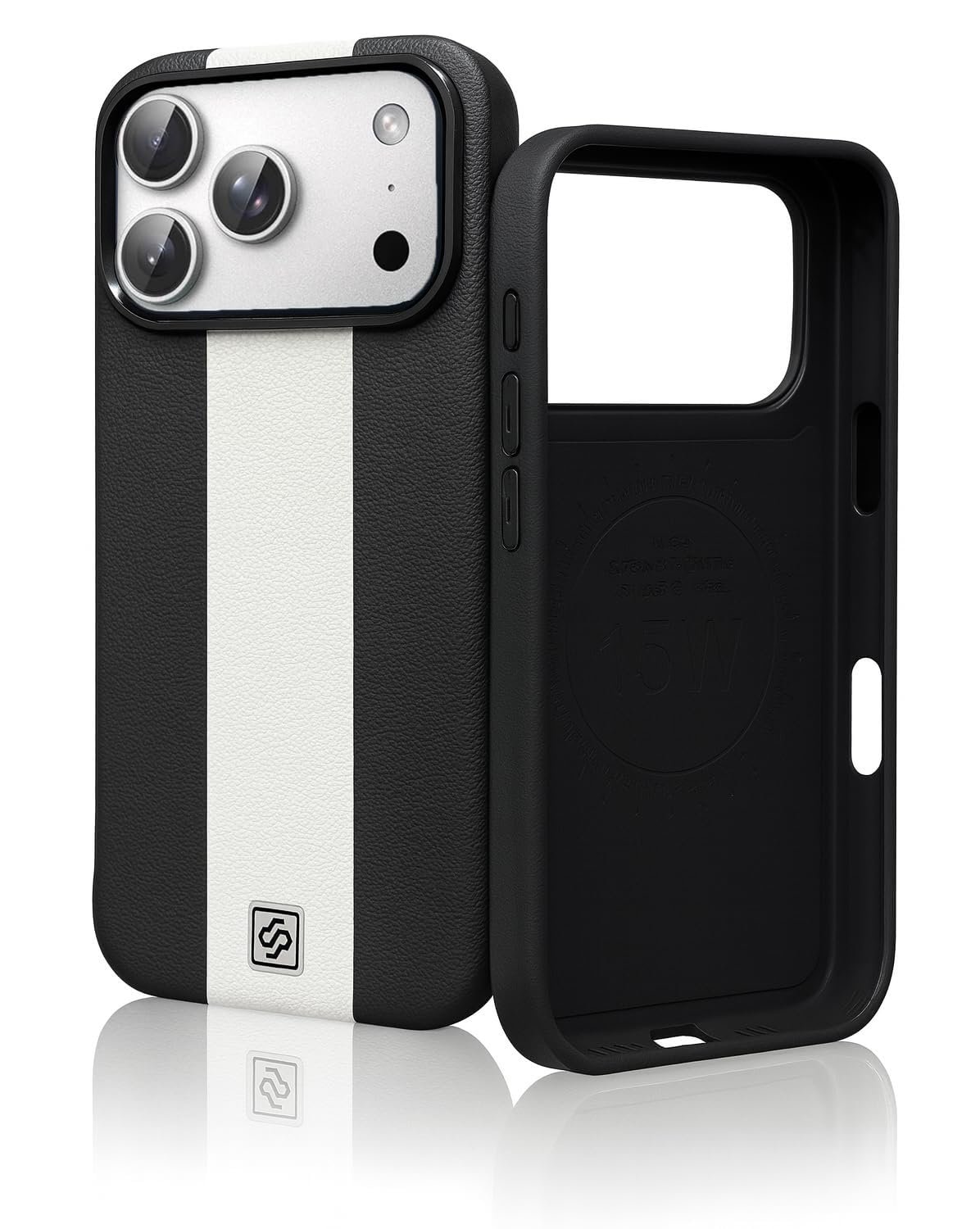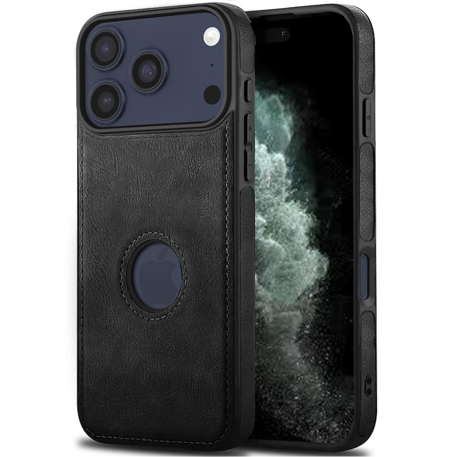 Leather Back Case – Compatible with iPhone 17 – Luxury Bumper Case – Flexible Vegan Leather – Electroplated Sides & Logocut – Full Camera Protetection & Raised Edges – (Black)