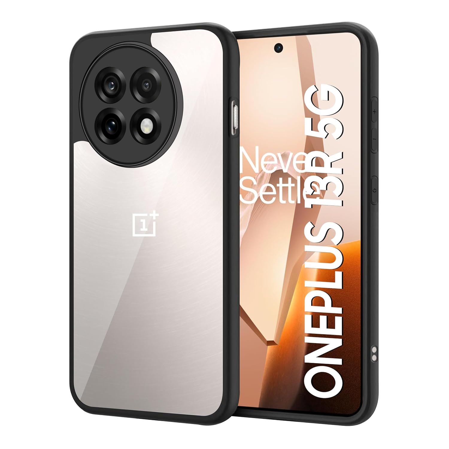 OnePlus 13R (5G) Backcover Case | Camera Protection Bump Shockproof Edge | Ultra Hybrid Transparent Acrylic Clear TPU+PC Hard Backcase Cover (Black)