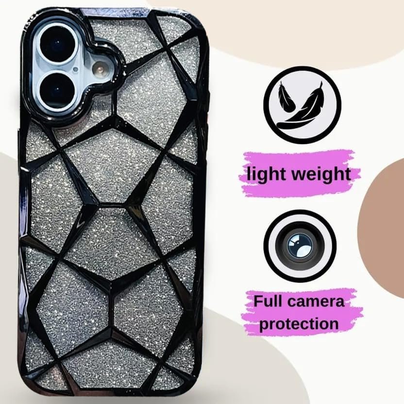 Glitter Back Cover Case Compatible with iPhone 17, Luxury Electroplated 3D Cube, Diamond Bling Shiny Soft TPU Clear Shockproof Women Girls Protective Phone Cover (Black)