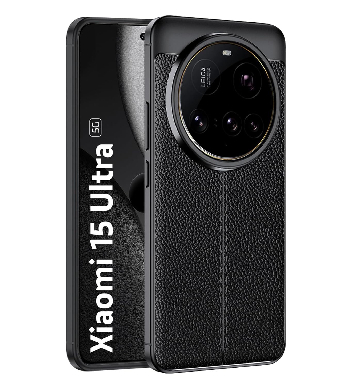Golden Sand Leather Textured Back Cover Case Compatible with Xiaomi 15 Ultra (Shockproof TPU | Midnight Black)