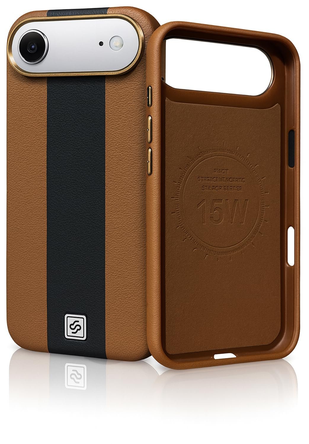 DailyObjects Leatherite Case for iPhone 17 Pro Compatible with MagSafe Wireless Charging | Tan-Grey Hybrid Magnetic Back Cover
